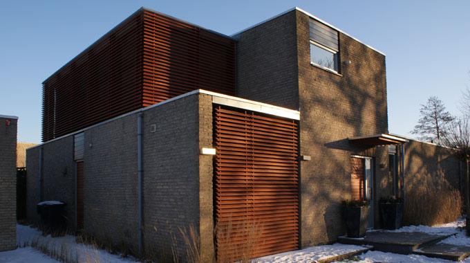 Deze karakteristieke bungalow is geheel gemoderniseerd en heeft een dakopbouw in eigen stijl gekregen. De benedenverdieping is opengebroken zodat veel direct contact mogelijk is tussen de verschillende verblijffuncties. Daarnaast is de bungalow zeer licht door het vergroten van de ramen, het daklicht in de keuken, de glazen schuifpui in de werkkamer en de glazen openslaande deuren in de hal. Ook zorgen de lamellen op de glazen dakopbouw voor een mooi lichteffect op de overloop en voor de juiste balans tussen privacy en zicht naar buiten. Tot slot zijn de badkamer en alle slaapkamers op de bovenverdieping vergroot.